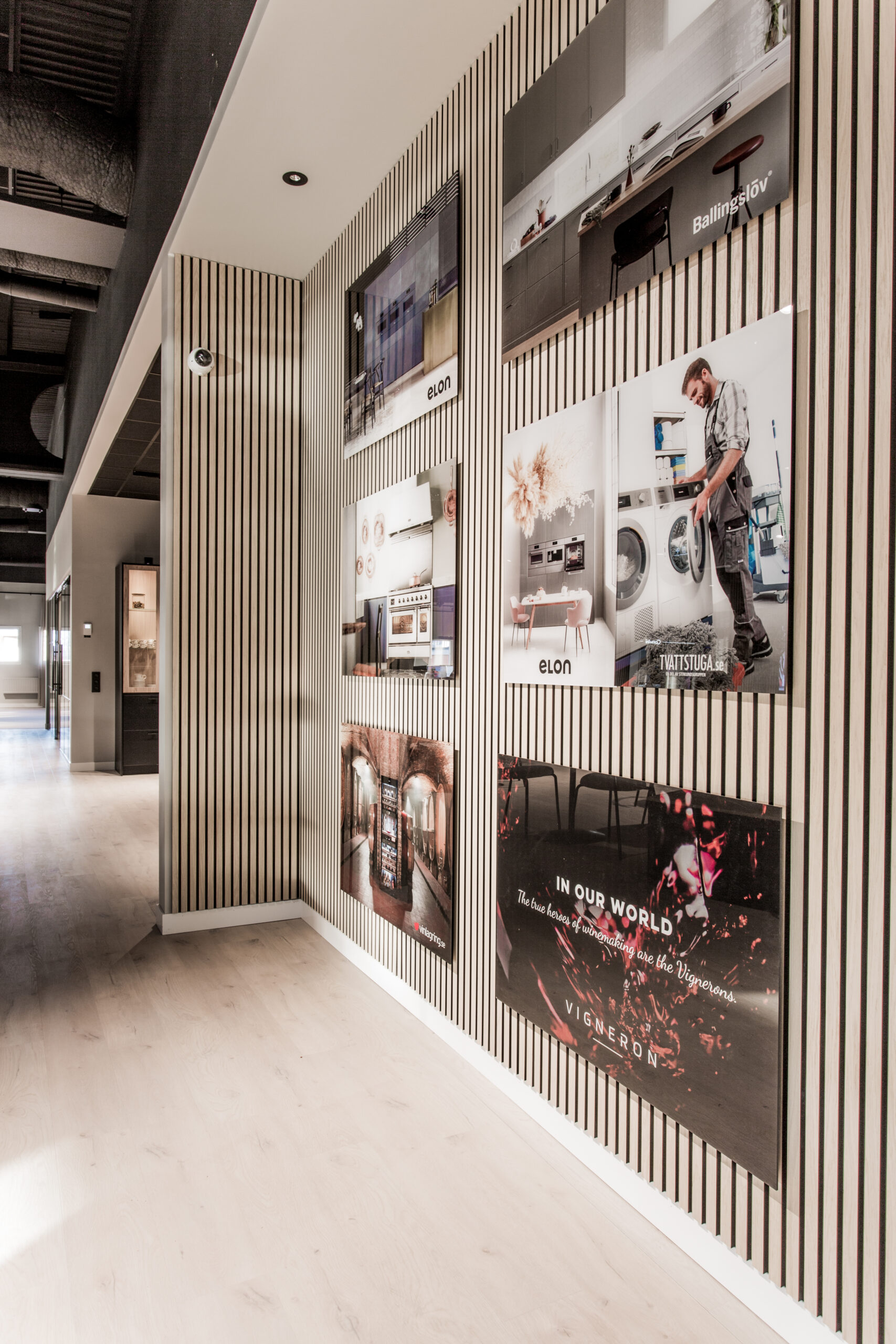 Familjeföretaget Stenlunds har sedan 1952 underlätta vardagslivet i hemmet och på arbetsplatsen med ett fokus på vitvaror och hushållsmaskiner. När vi fick uppdraget att designa deras kontor i Stockholm låg utmaningen i att skapa en gemensam öppen yta, som underlättar vid samarbete, men med en känsla av mindre avdelningar för separata gruppmöten. Då de har en hel del besök ska det kännas precis som om man välkomnas av familjen Stenlund.